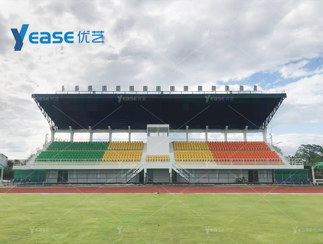 堅固耐用的鋼結構看臺系統(tǒng),滿足戶外場館長期使用與高承載要求。